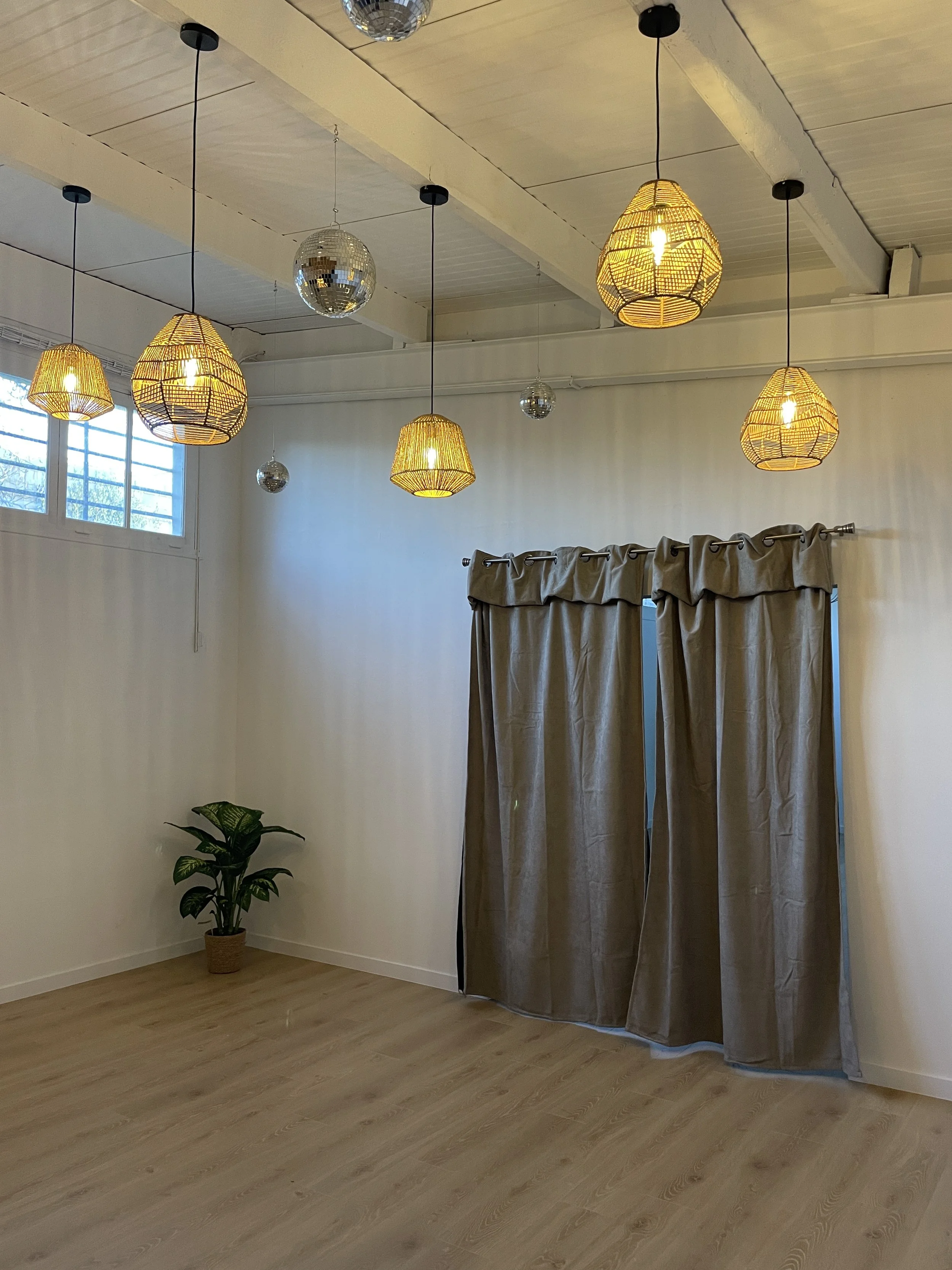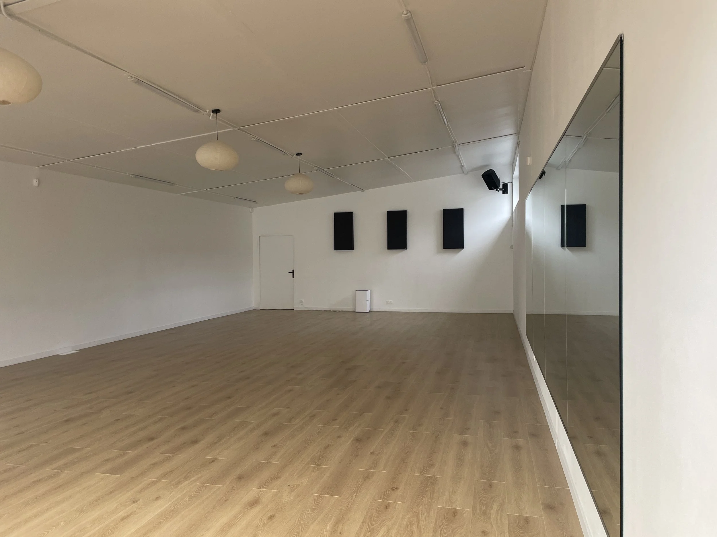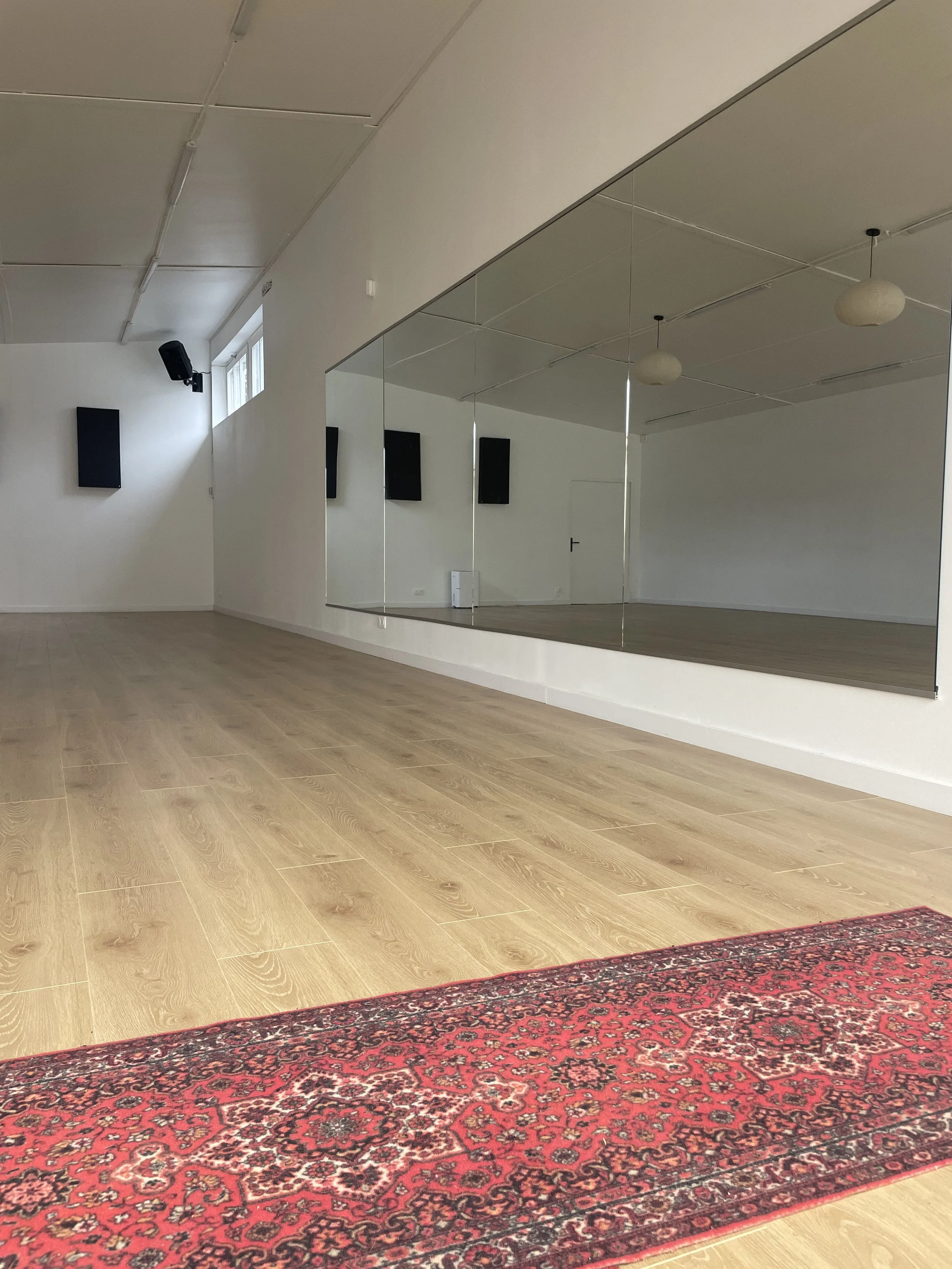 Le Grand Studio d'une surface de 108m2, composé d'un miroir, d'un système son et un accès WC.